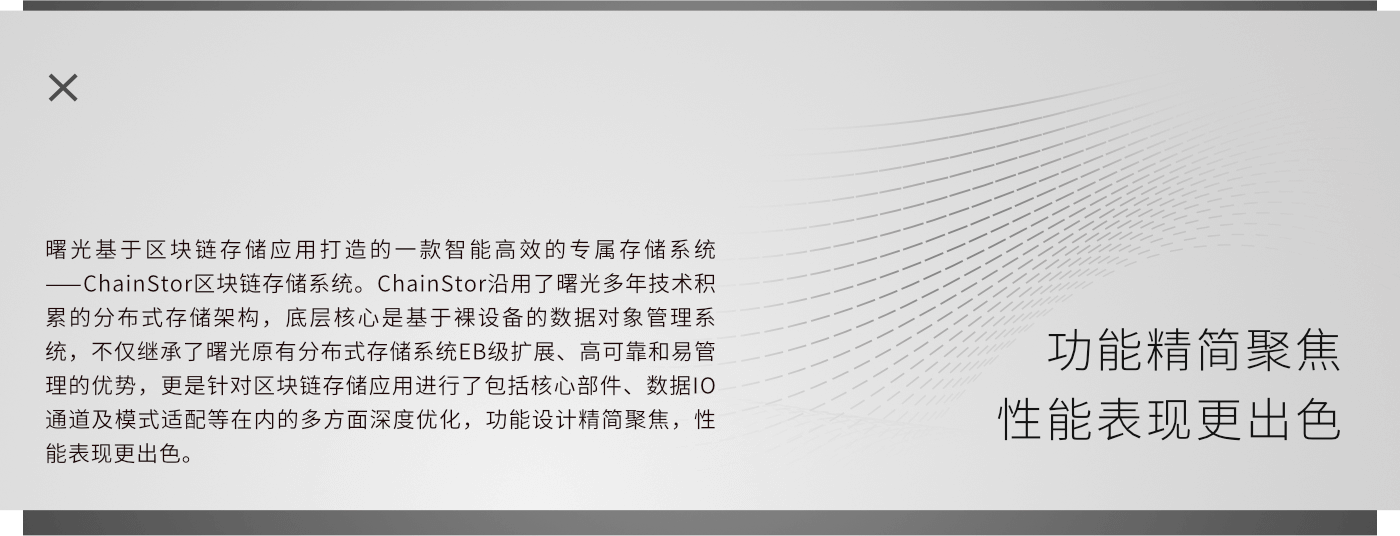 基于多年的分布式存储技术积累和部署实施经验,尊龙凯时公司以区块链用户需求为核心,用四条准则来打造ChainStor,帮助用户实现长期的存储建设愿景。