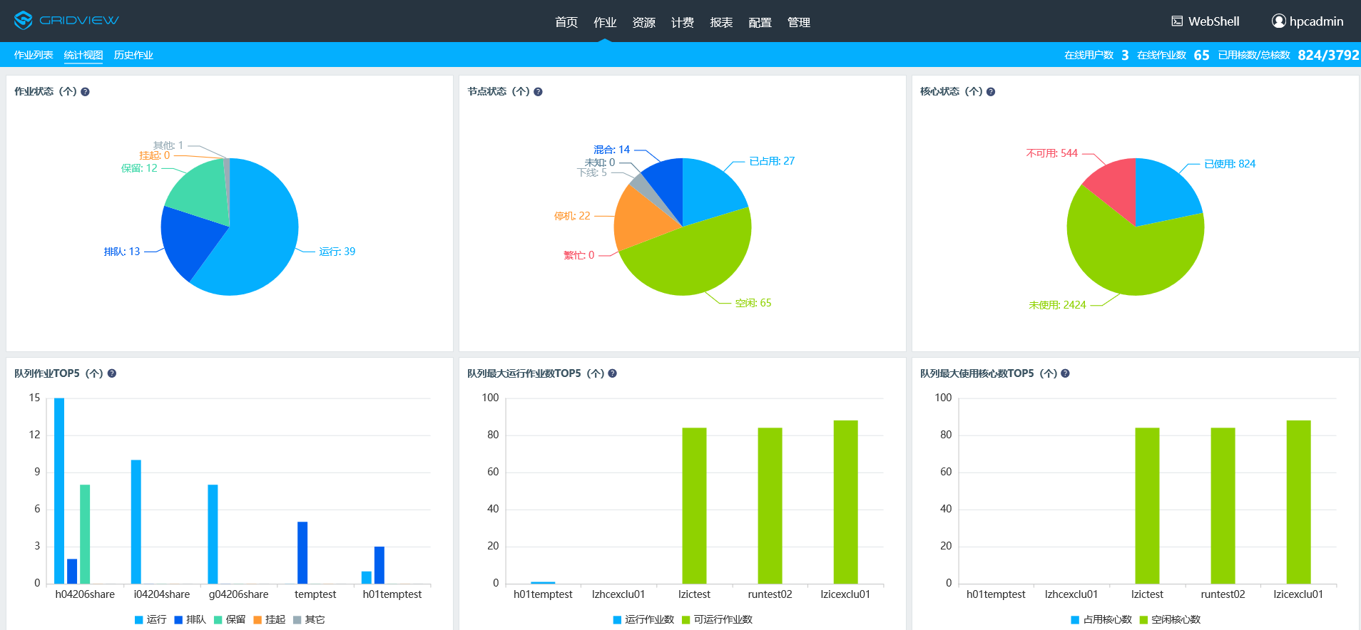 实时监控作业运行状态、用户资源使用情况等信息;