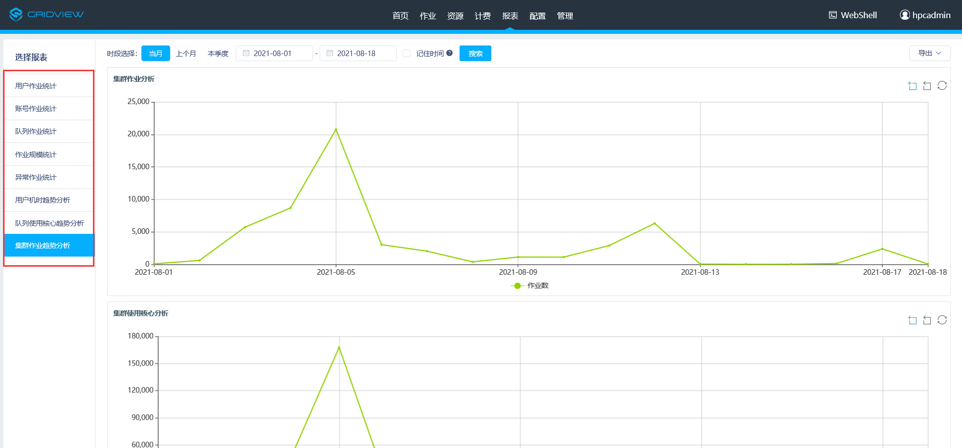 支持从计费账号、用户(组)、队列、应用软件等不同角度导出计费账单和详单,可导出Excel、PDF等格式的报表。
